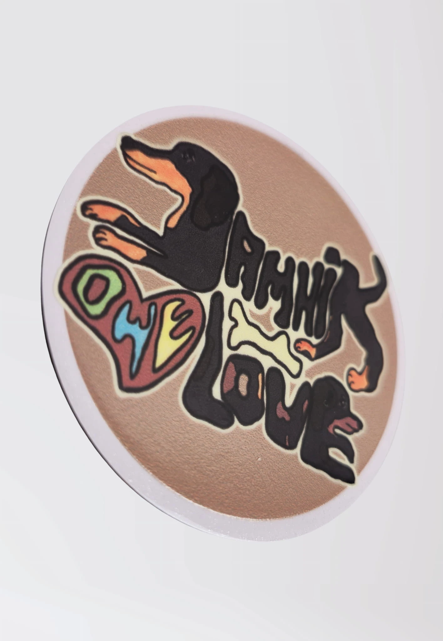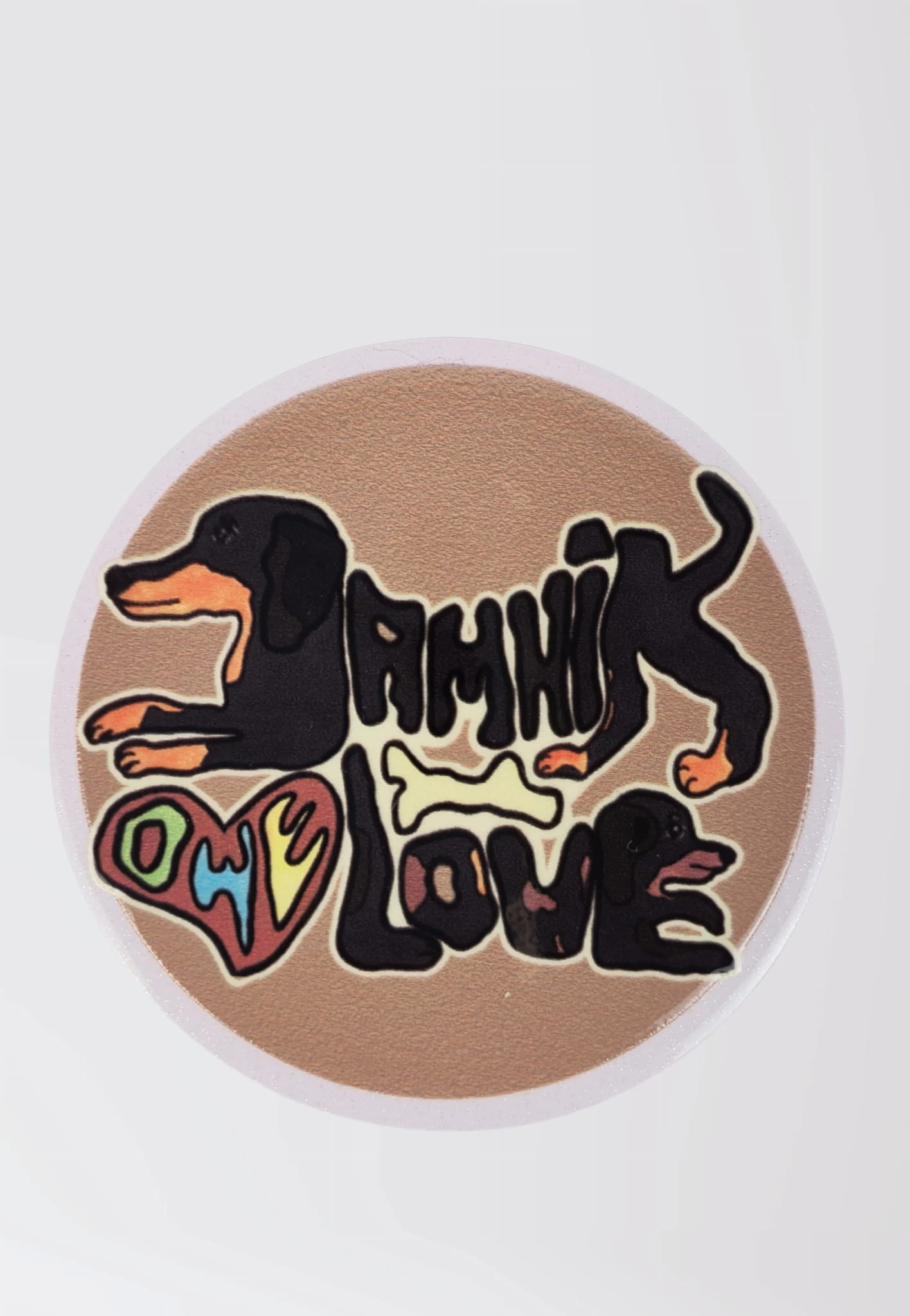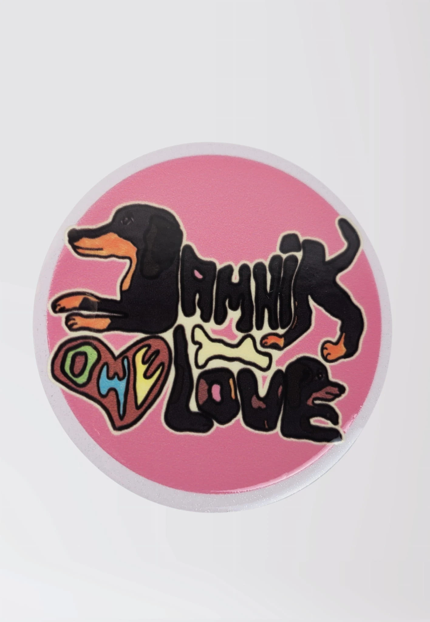Okrągły magnes na lodówkę z motywem jamnika to idealny drobiazg dla miłośników psów z niskim podwoziem. Projekt bazuje na ręcznie malowanej grafice „JAMNIKOWE LOVE”, autorstwa MalczewskaArt, dzięki czemu każdy detal jest starannie odwzorowany i pełen uroku.