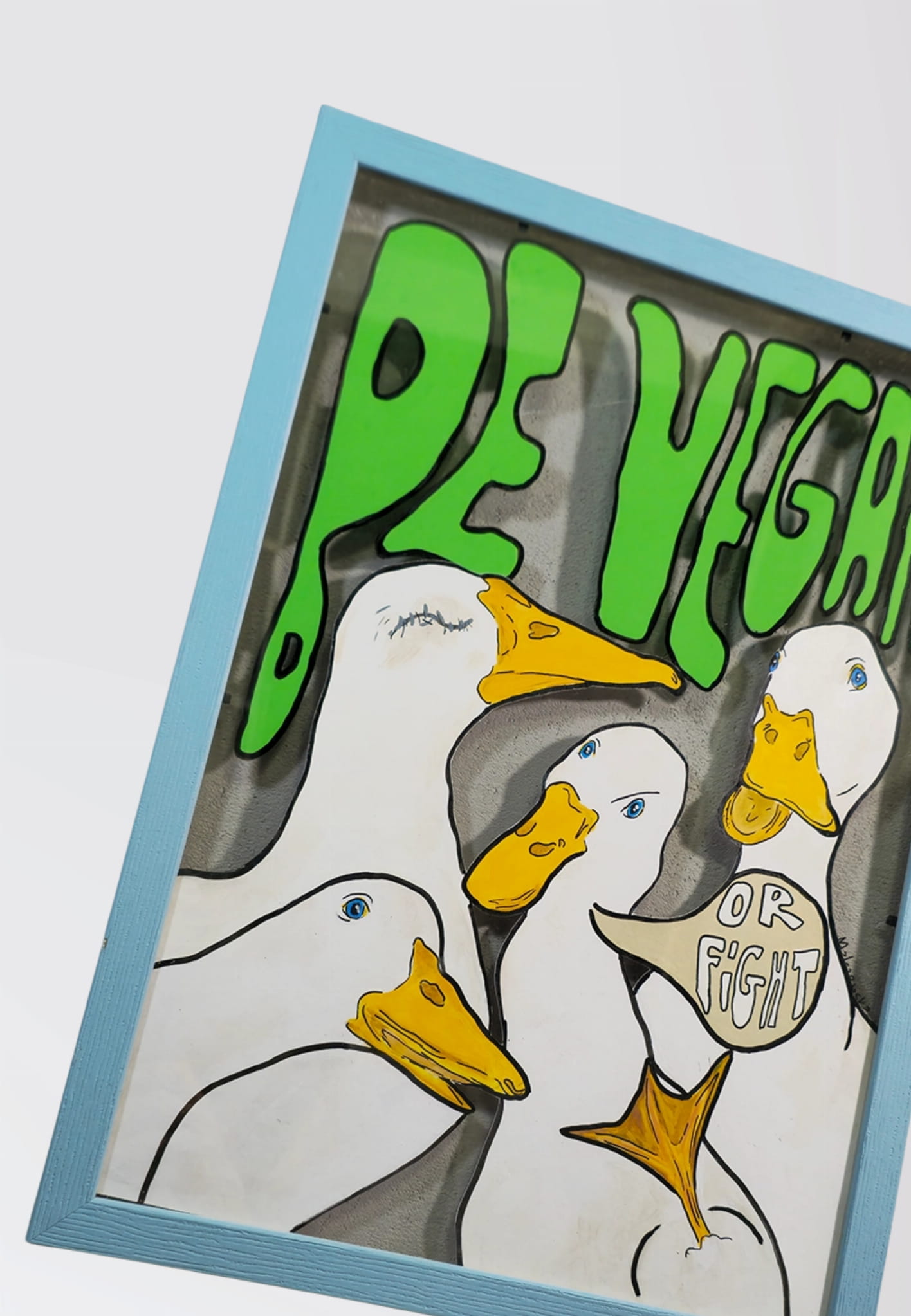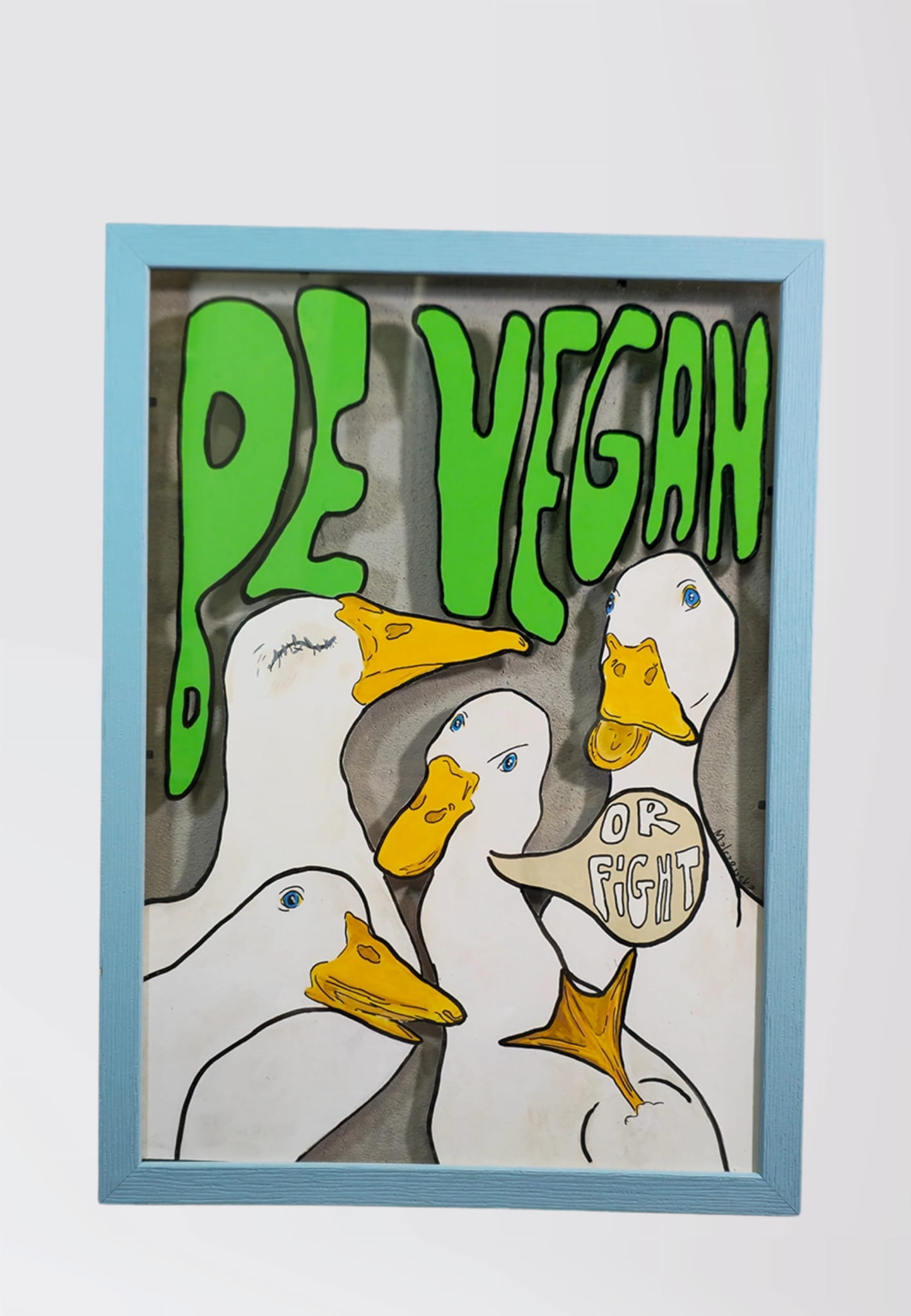Ręcznie malowana grafika z motywem gęsi - BE VEGAN OR FIGHT