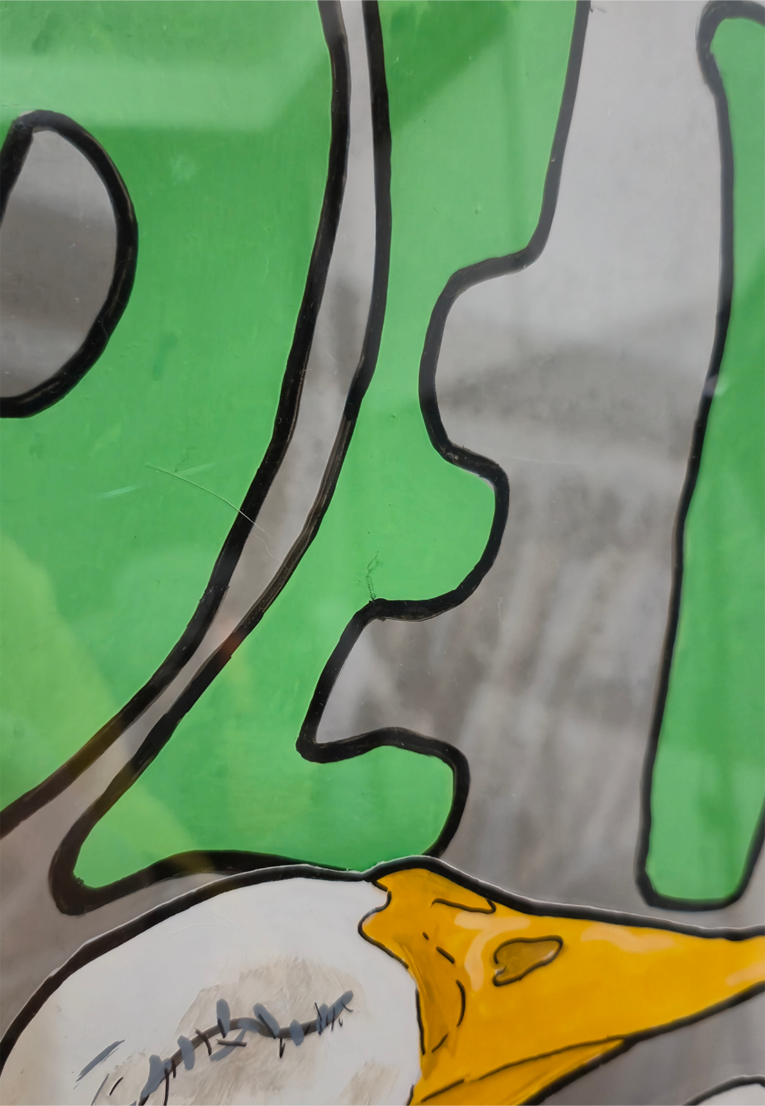 Wyrazista, odważna i pełna charakteru ręcznie malowana grafika z motywem gęsi, która nie pozostawia miejsca na obojętność.