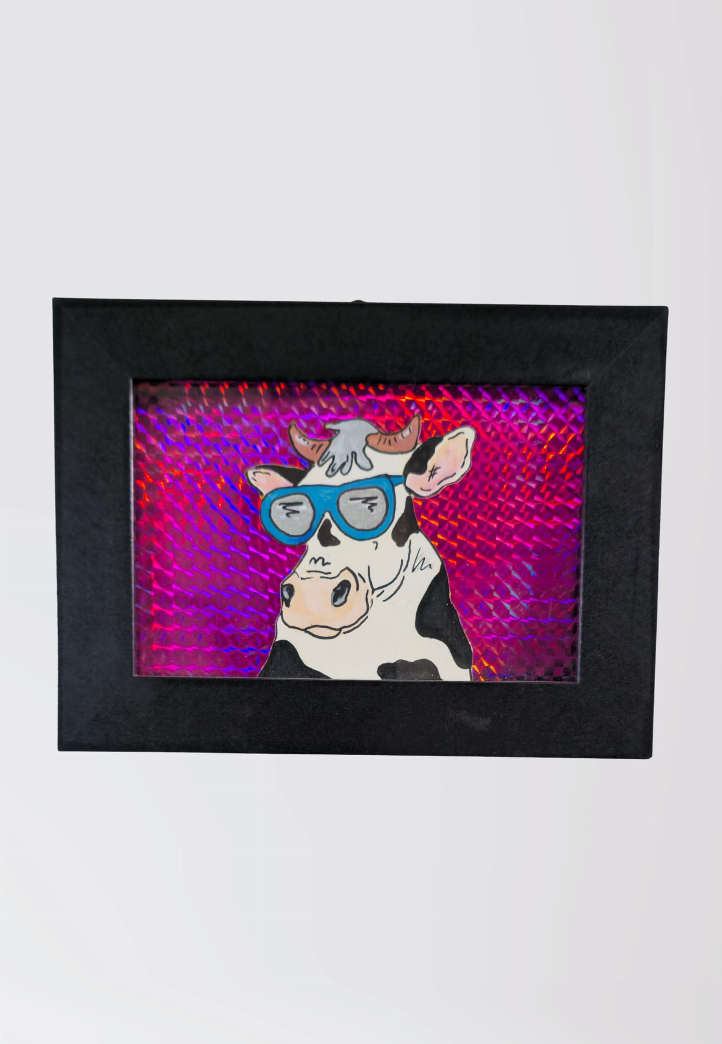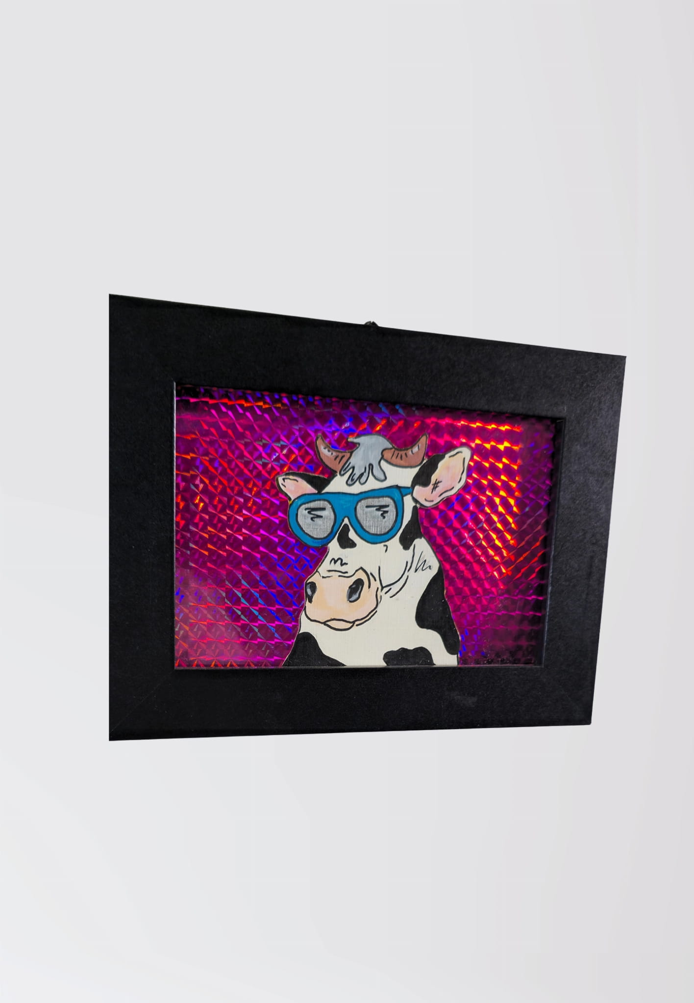Ręcznie wykonana grafika z motywem imprezowej krowy | VEGAN GĘG | MalczewskaArt
