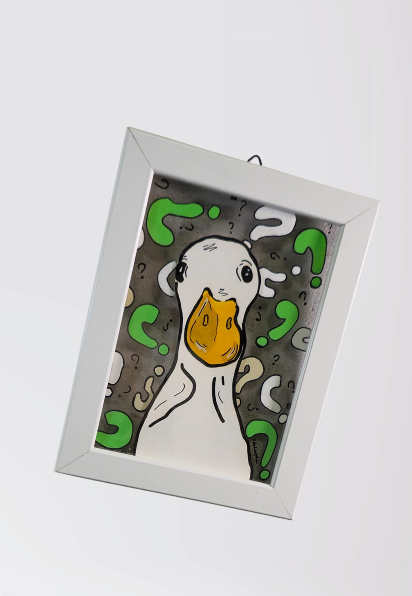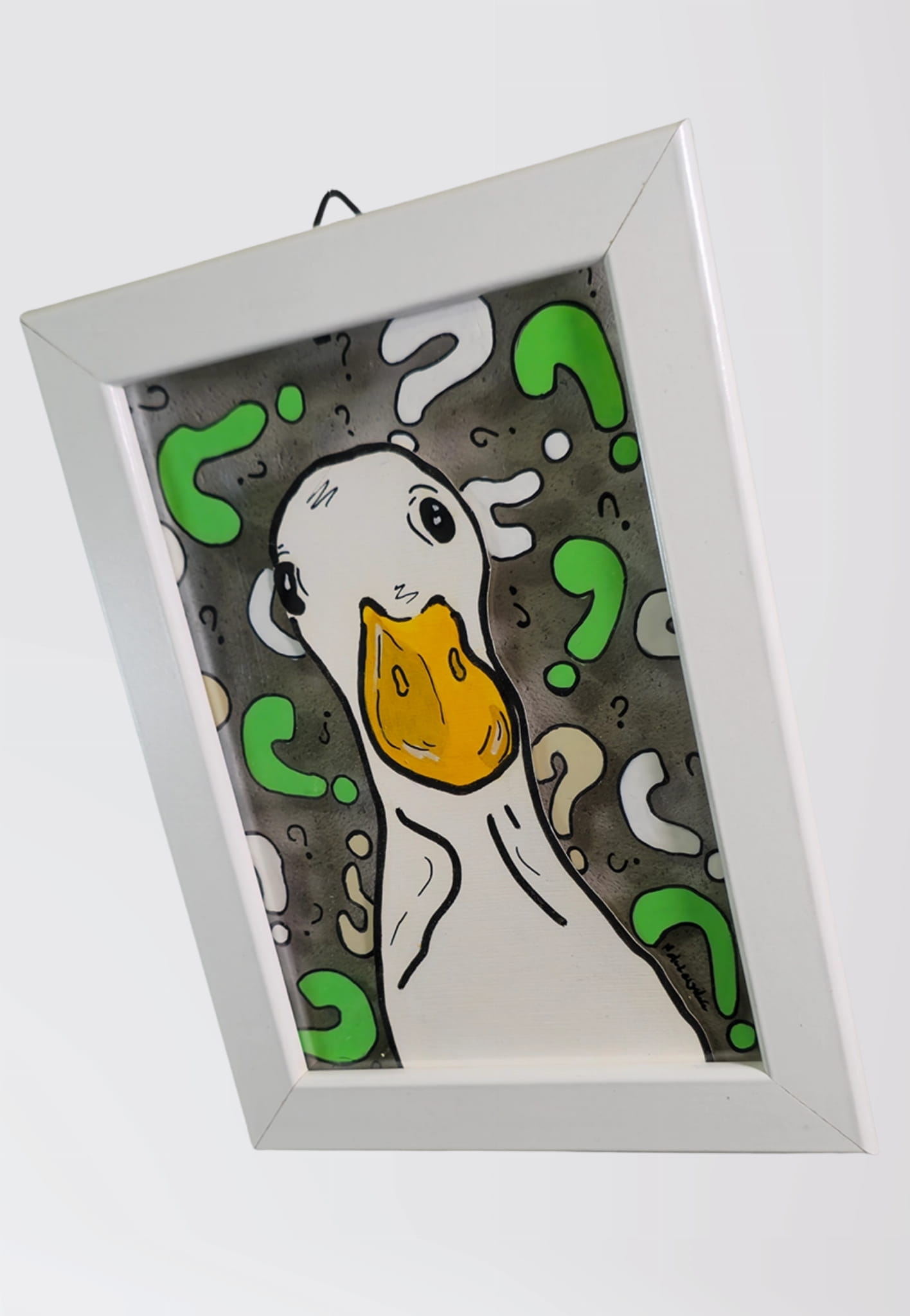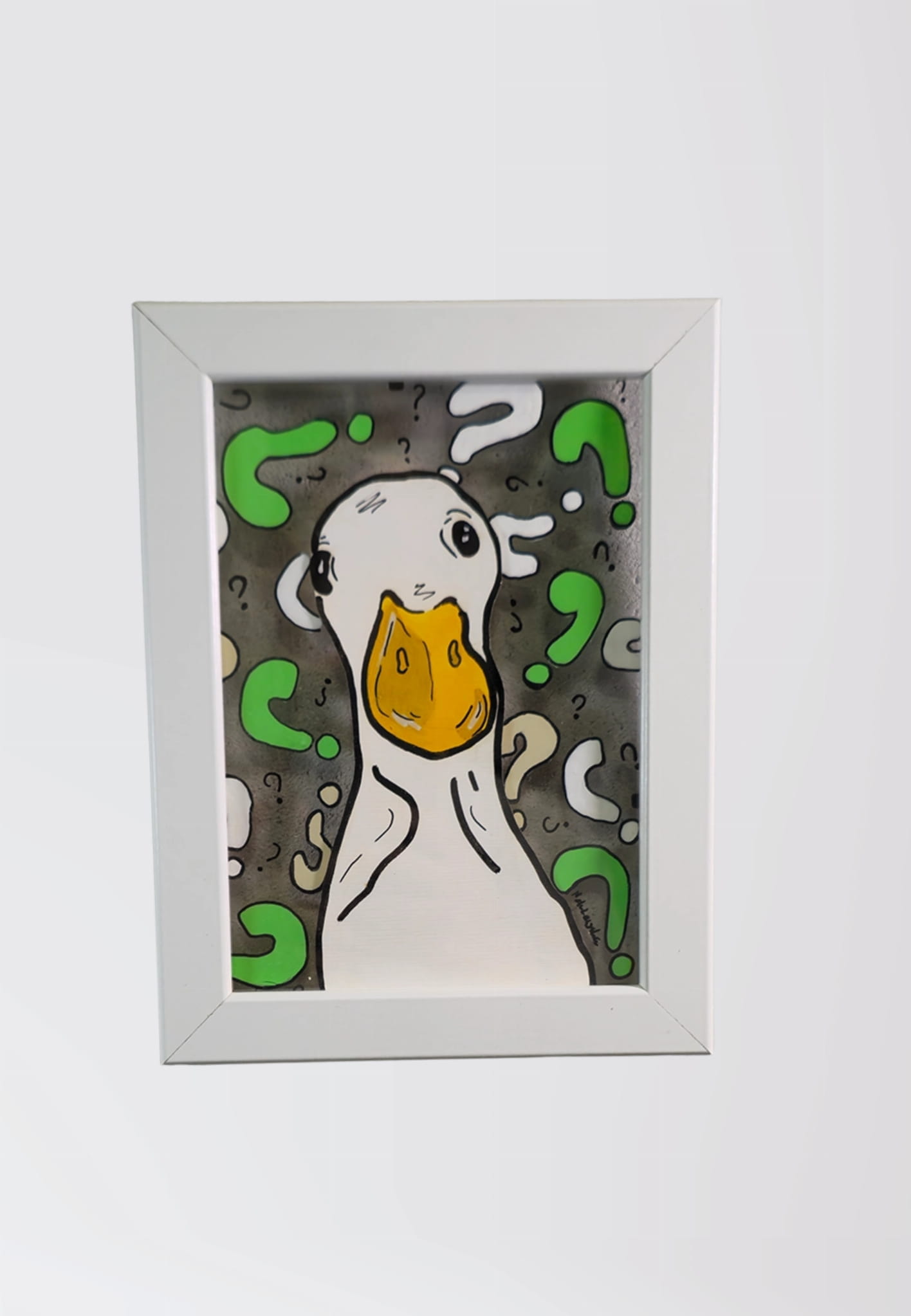 Ta oryginalna grafika z motywem gęsi to prawdziwa perełka dla miłośników zabawnych i zwariowanych motywów w domu. Nasza gęś ma same pytania i wygląda, jakby wiedziała, że nikt nie zna odpowiedzi – idealna do pokoju, salonu, kuchni czy biura.