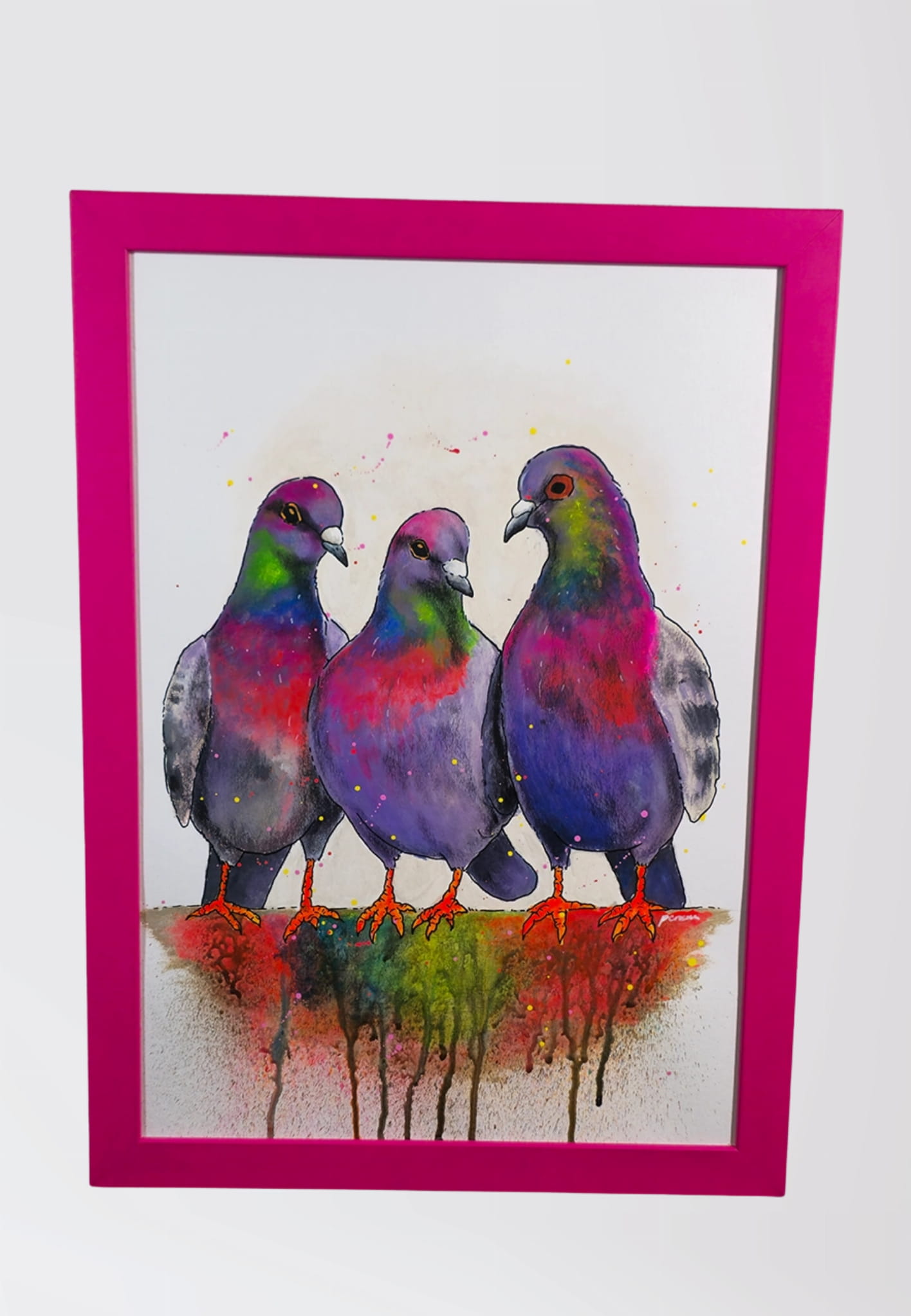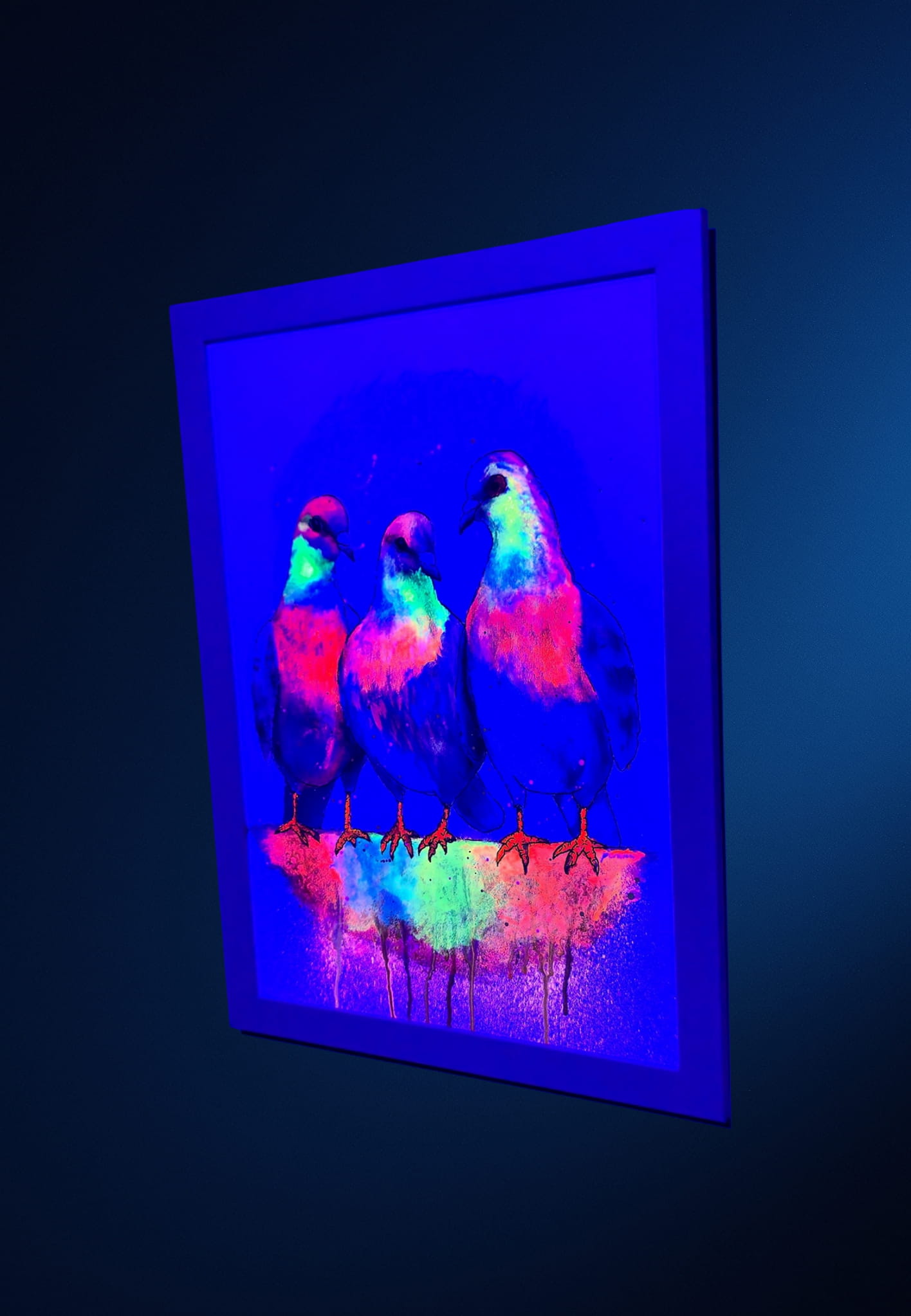 Te gołębie to nie zwykłe ptaki – trochę jak jednorożce, trochę jak tęcza w ruchu. Dzięki neonowym farbom świecą w świetl UV (i niebieskim), tworząc niesamowity efekt w pokoju, salonie lub pracowni artystycznej. Idealne dla miłośników kolorowej sztuki, grafik UV i dekoracji, które przyciągają wzrok nie tylko za dnia.