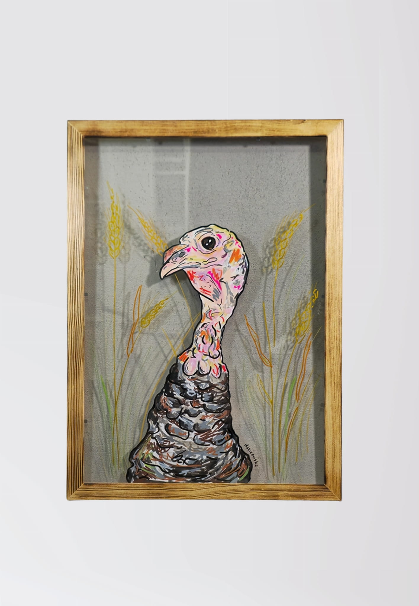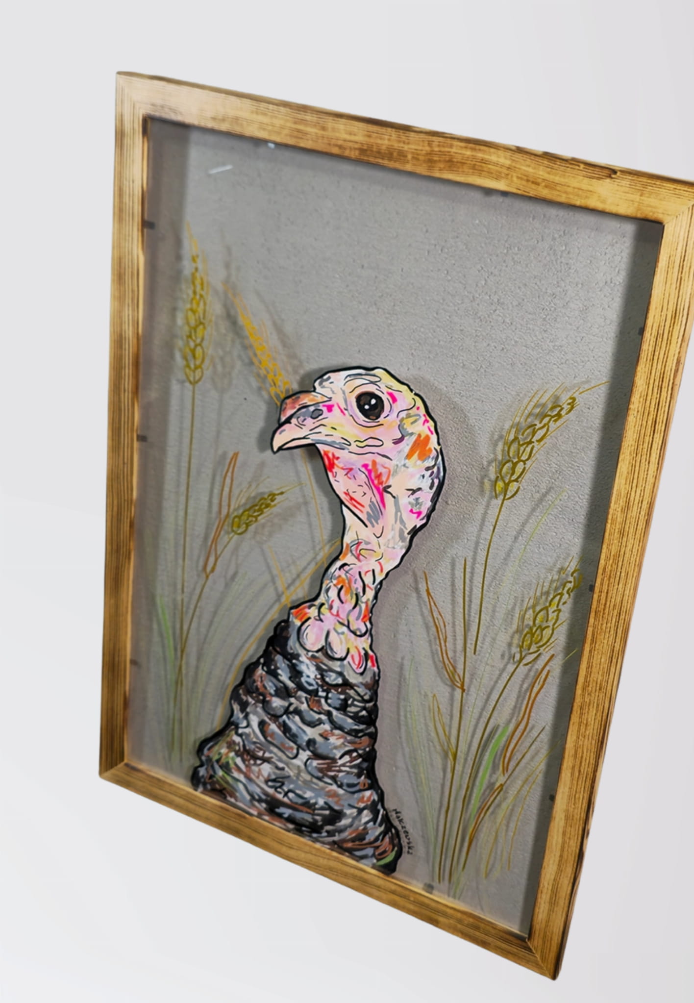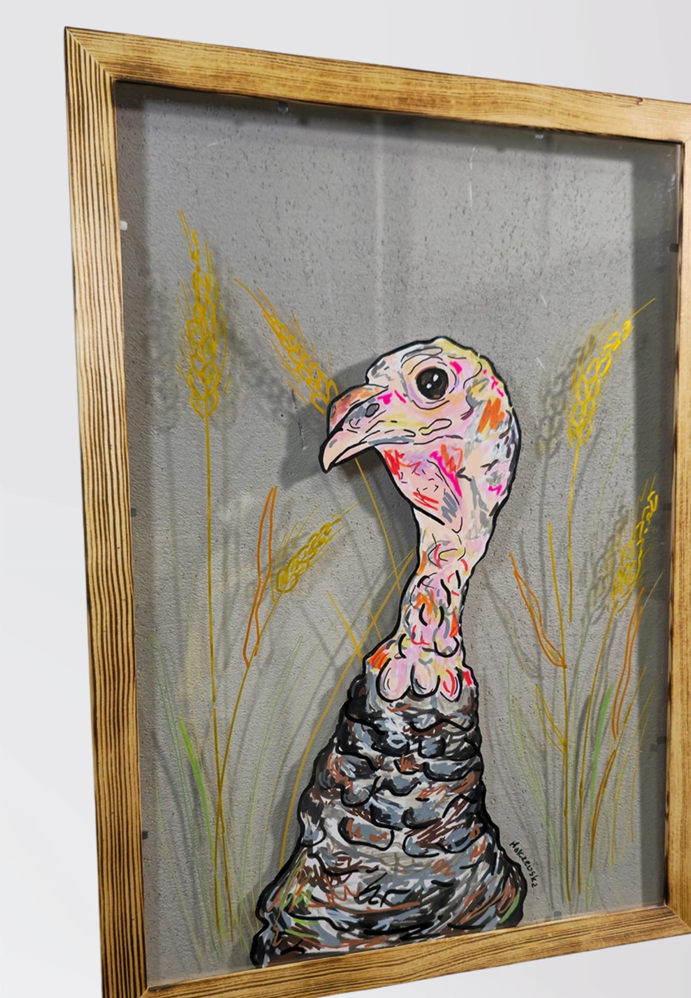 Wyrazista ręcznie malowana grafika z motywem indyka, będąca częścią kolekcji „VEGAN GĘG” autorstwa MalczewskaArt. To praca, która łączy rysunkowy charakter i nowoczesną formę, idealnie odnajdując się w nieoczywistych wnętrzach.
