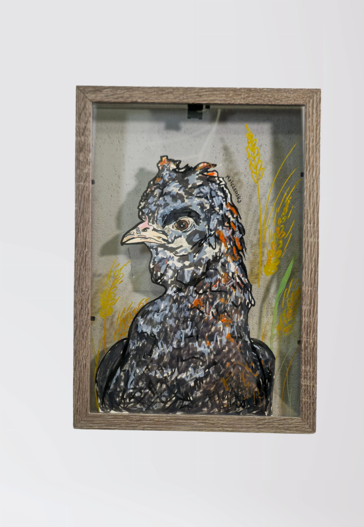 Tadeusz to podopieczny Azylu Kurza Łapka. Ten bohaterski kurak pomieszkiwał na Kaszubach, a po wypadku łapek został wyrzucony ze swojego domu. Dzięki dobrym ludziom zyskał leczenie, ciepły kurnik i miłość – a my postanowiliśmy uwiecznić jego historię na grafice, w hołdzie za wytrwałość i chęć życia.
