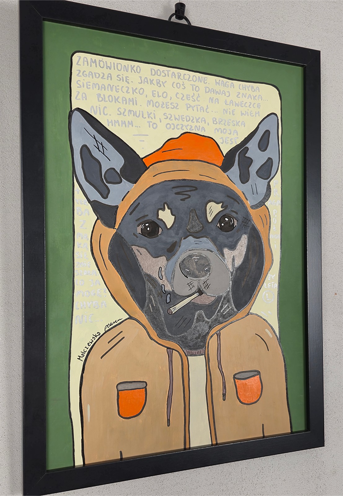 Pies "AREK DORĘCZYCIEL" to część cyklu artystycznego "Galeria Praskich Osobowości".