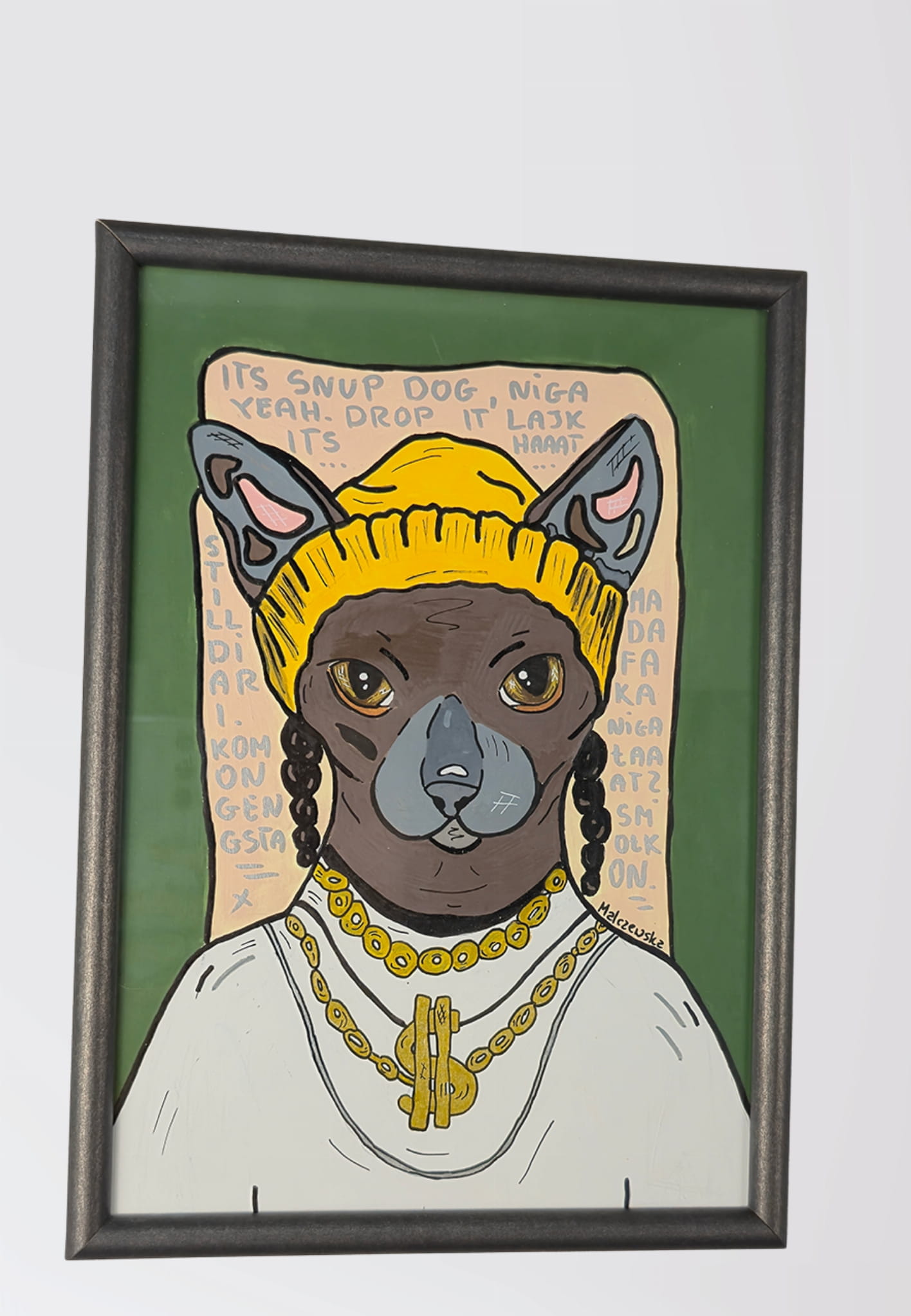 Snoop Cat – ręcznie malowana grafika / plakat z Kotem Sfinksem | MalczewskaArt