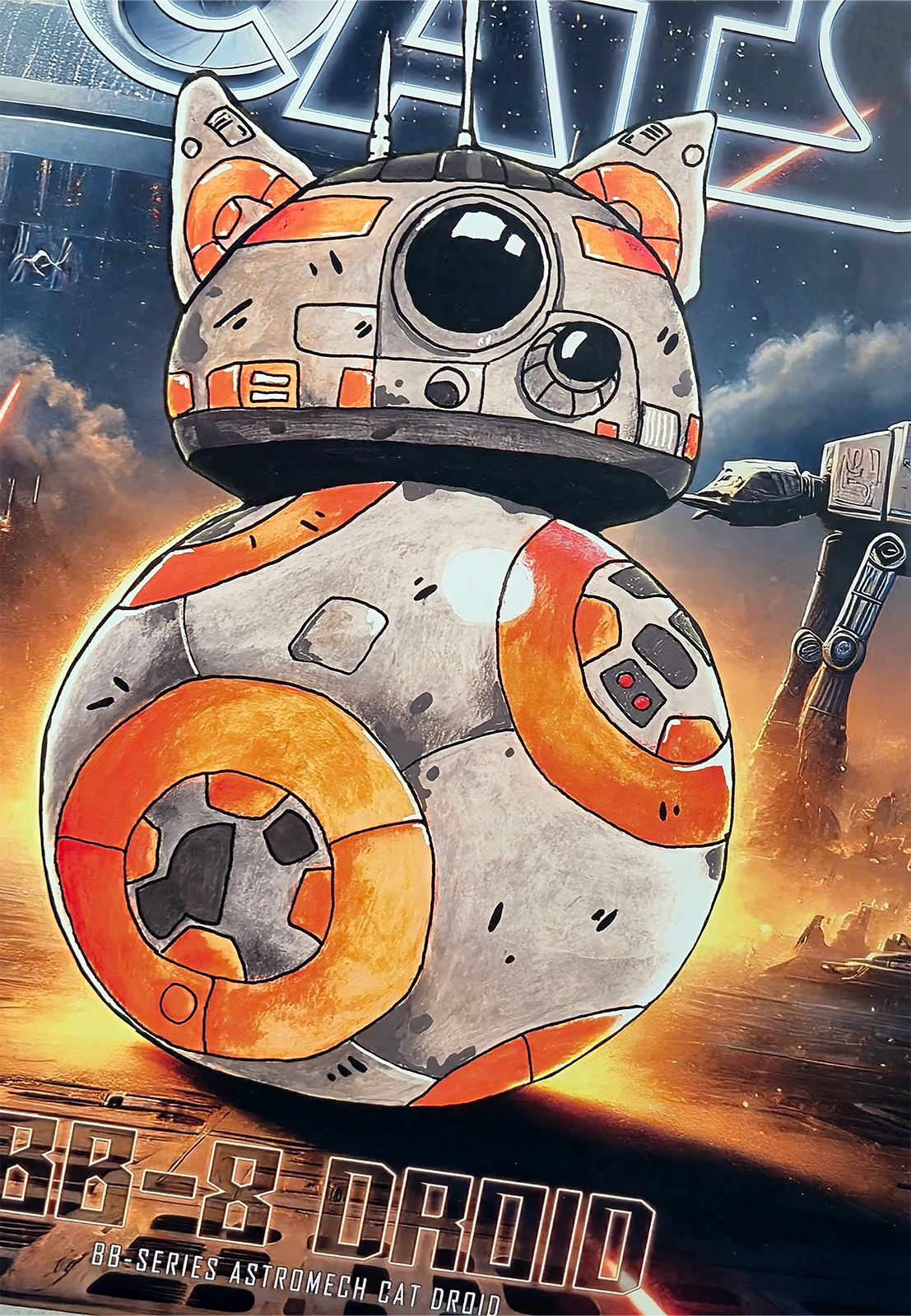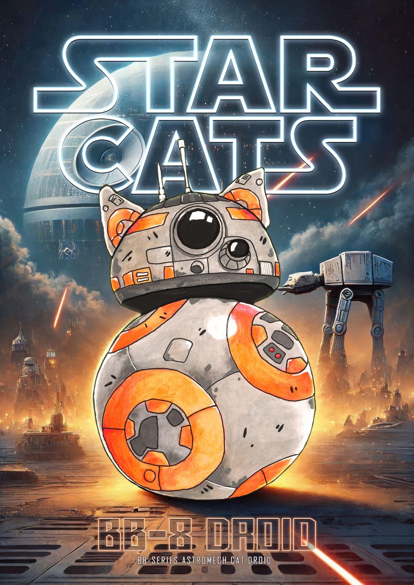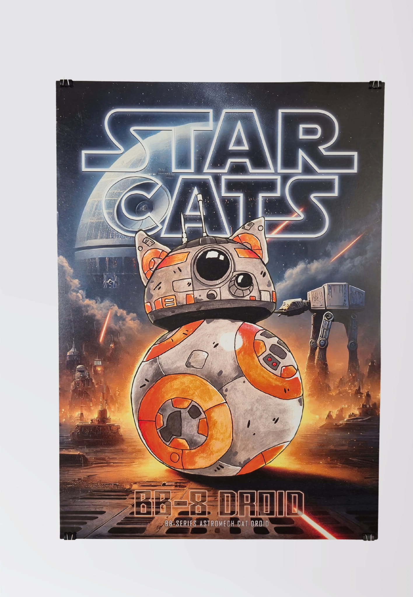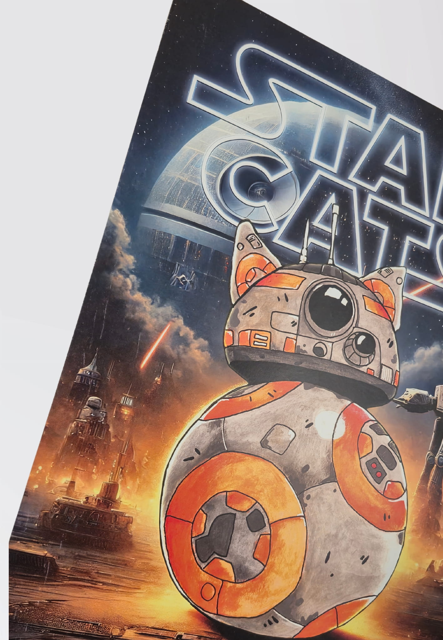 To unikalny plakat artystyczno-cyfrowy, inspirowany światem Gwiezdnych Wojen - STAR WARS, przedstawionym w oryginalnym, kocim wydaniu.