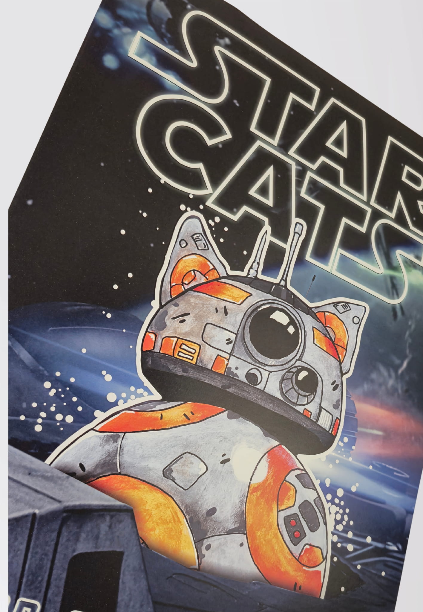 To unikalny plakat artystyczno-cyfrowy, inspirowany światem Gwiezdnych Wojen - STAR WARS, przedstawionym w oryginalnym, kocim wydaniu.