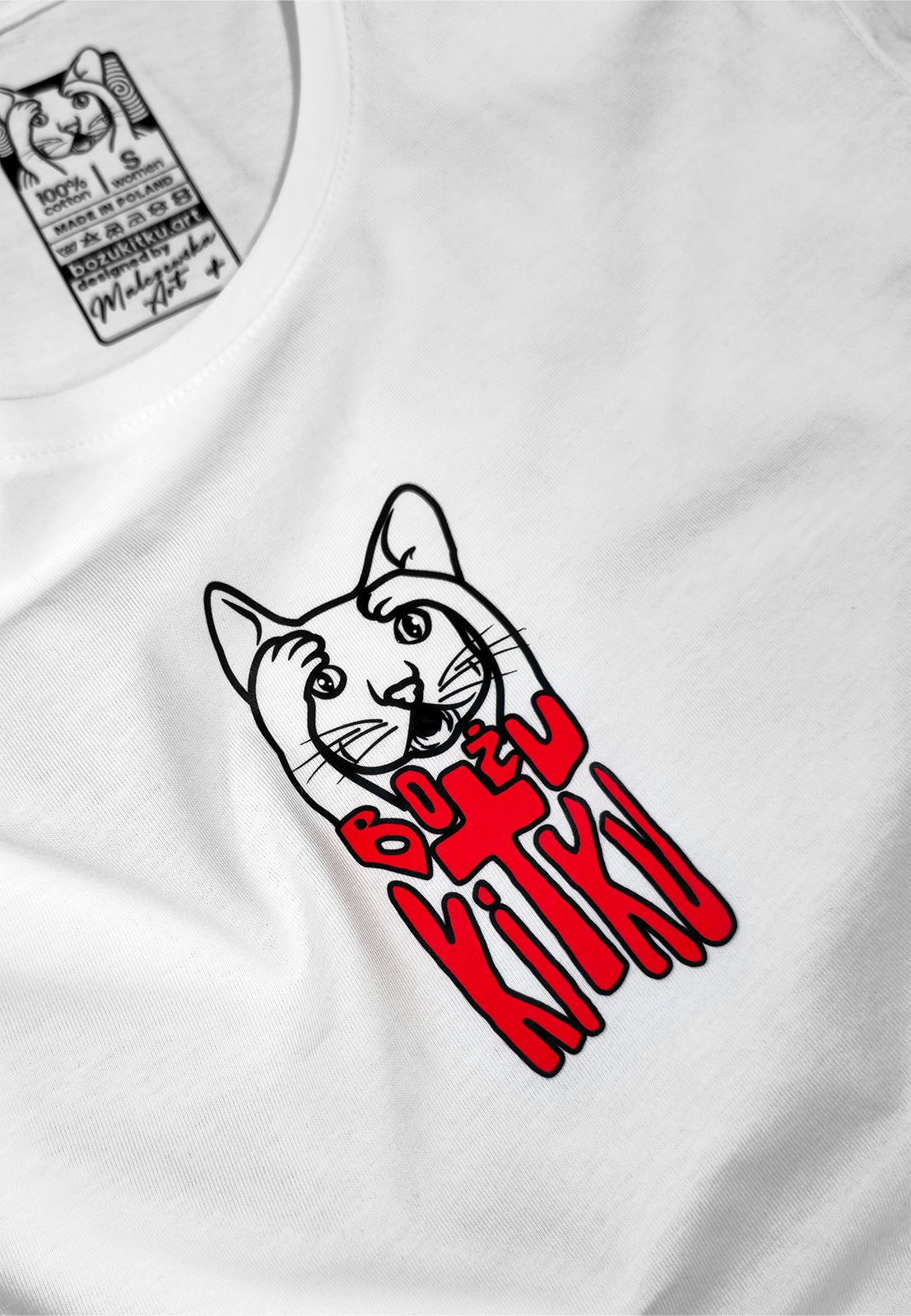 Minimalistyczny t-shirt damski z logiem BOŻU KITKU | MalczewskaArt