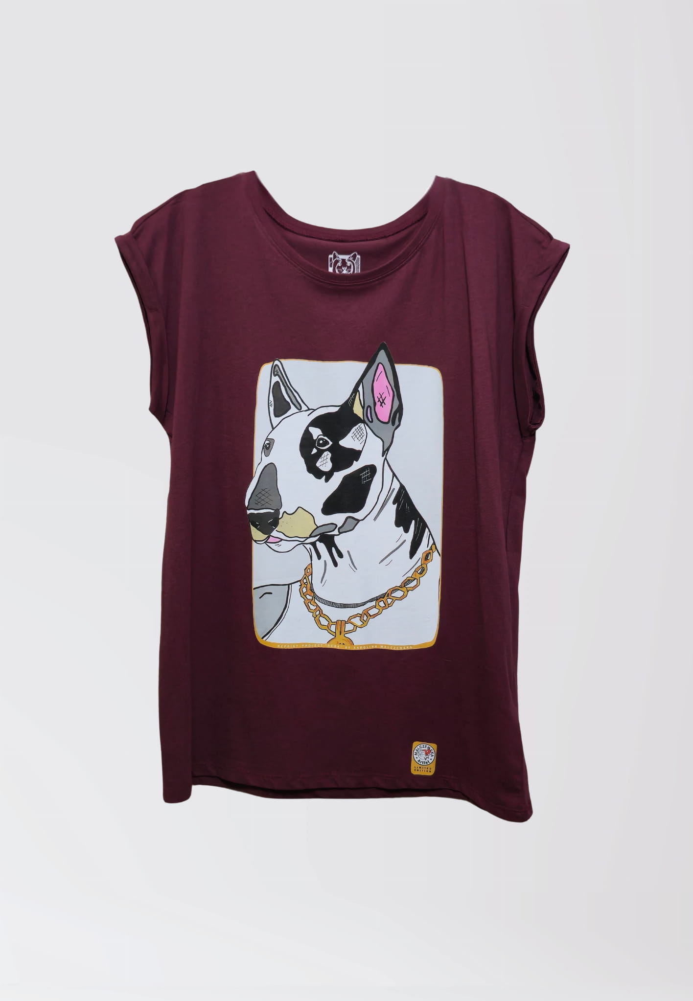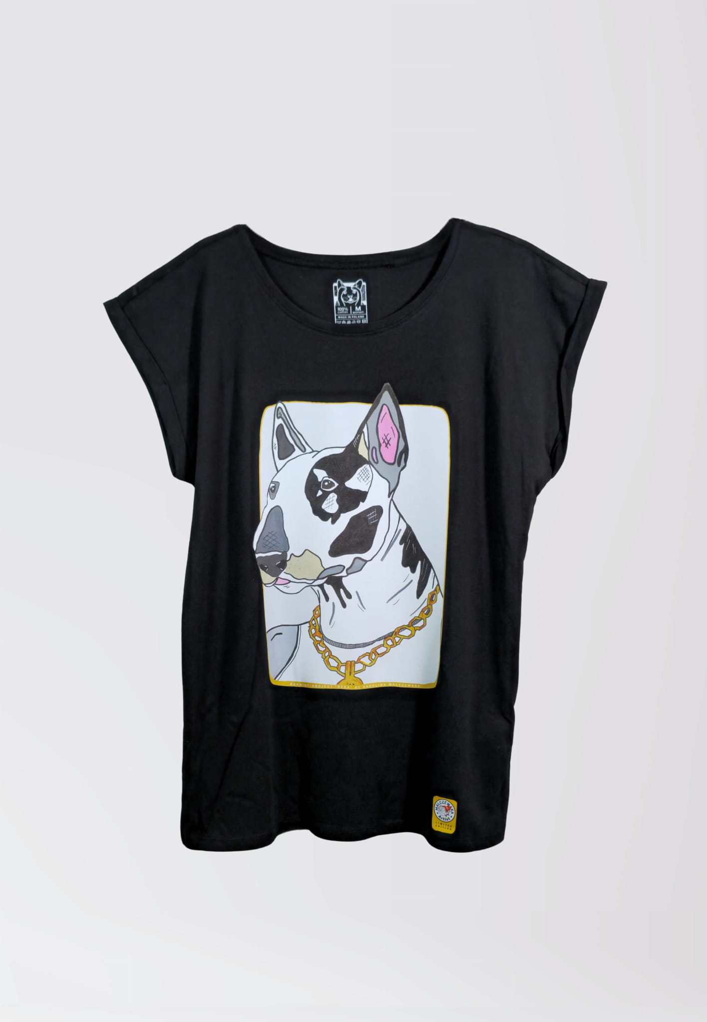 T-shirt dla miłośniczki bulteriera – koszulka z reprintem ręcznie malowanej grafiki | Malczewska Art