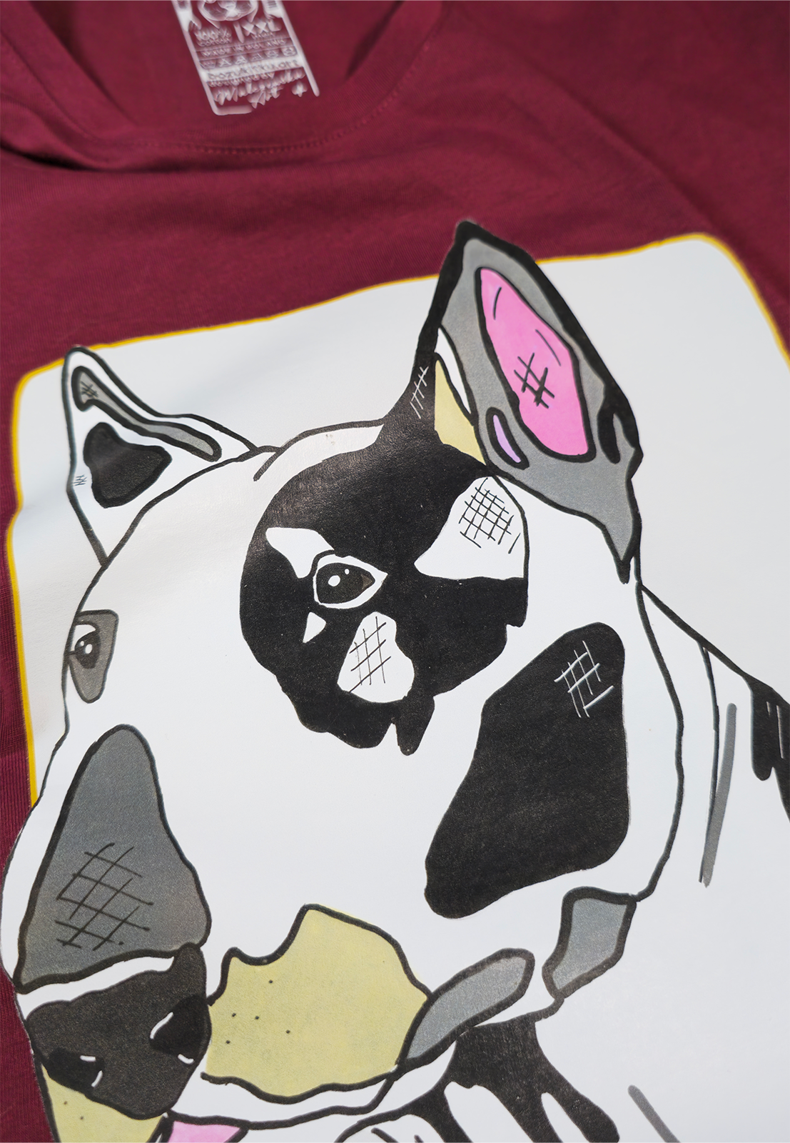 Projekt "SEBA BULTERIER" to reprint ręcznie malowanej grafiki, autorstwa MalczewskaArt – autorski, oryginalny motyw dla fanek bulteriera, które lubią design z pazurem.