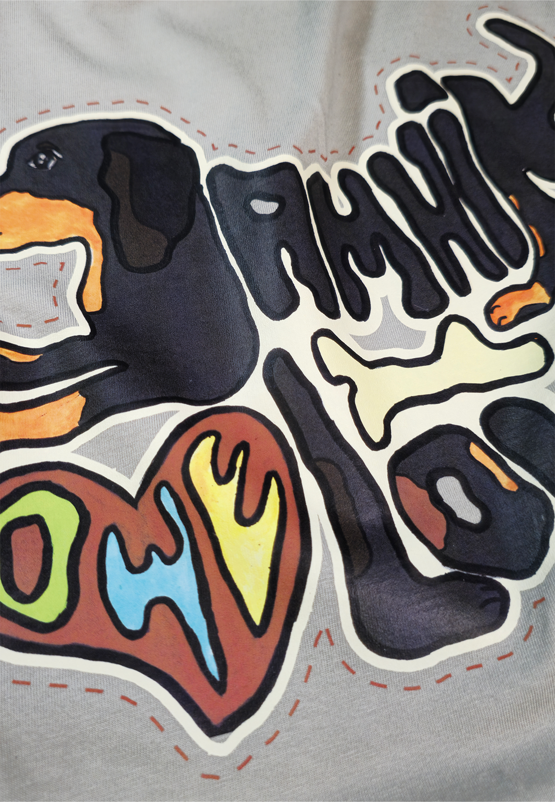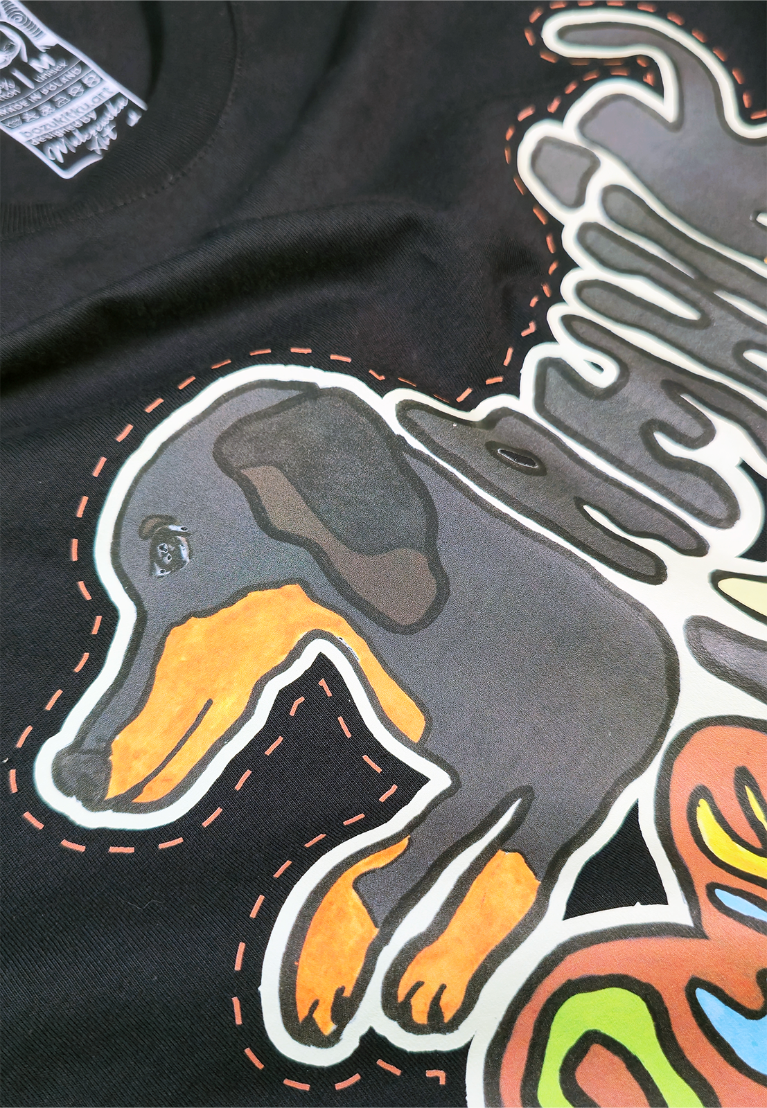 „JAMNIKOWE LOVE” to unisexowy t-shirt z motywem jamnika, powstały jako reprint ręcznie malowanej grafiki autorstwa MalczewskaArt. Projekt stworzony z myślą o wszystkich, którzy wiedzą, że jamnik to nie tylko pies – to osobowość.