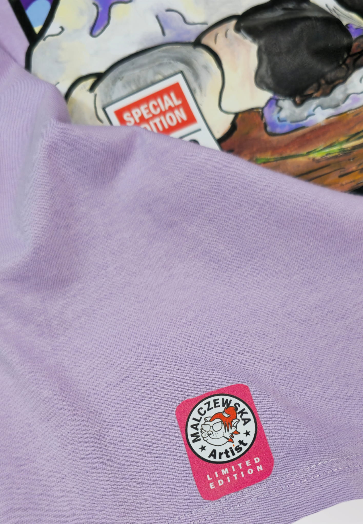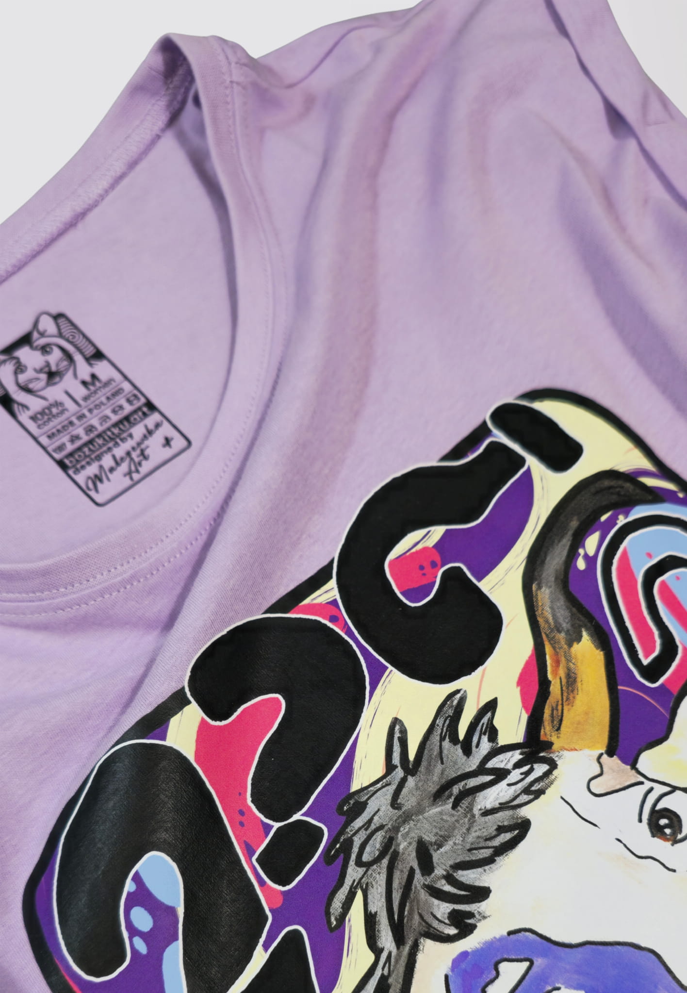 Projekt „Krowa MiŁka” to reprint ręcznie malowanej grafiki autorstwa MalczewskaArt. Ta urocza dama zna się na słodkim życiu i ma fioletowe koneksje… Do kompletu w innej odsłonie znajdziesz jej kumpla – świstaka, bo każdy duet musi mieć swoją legendę.