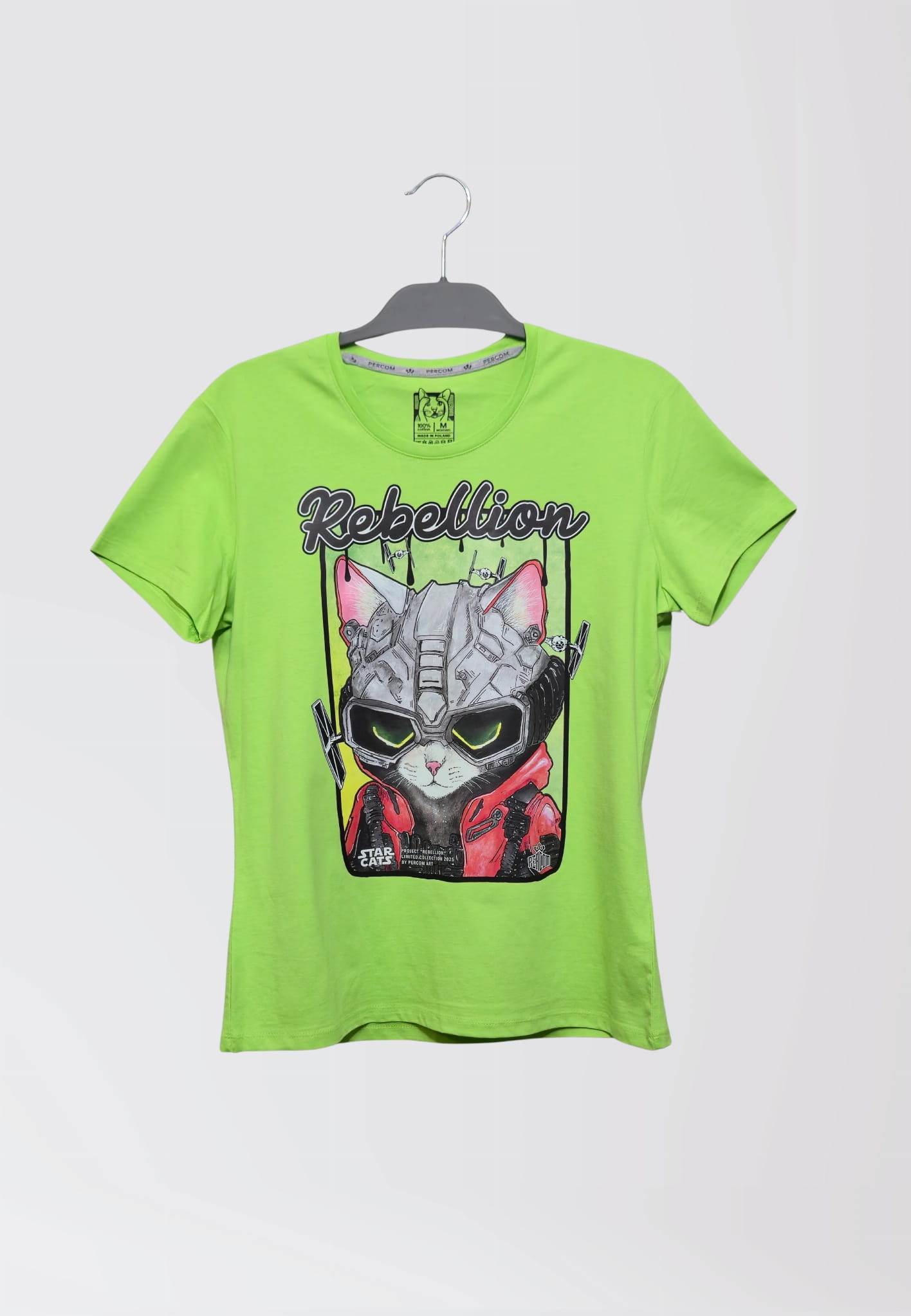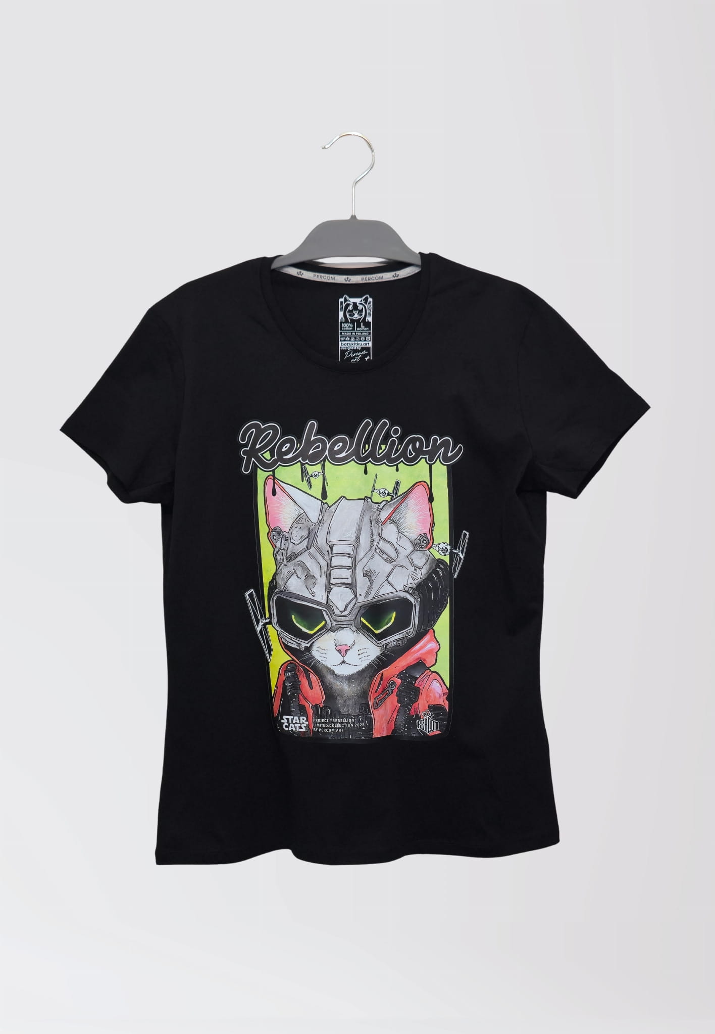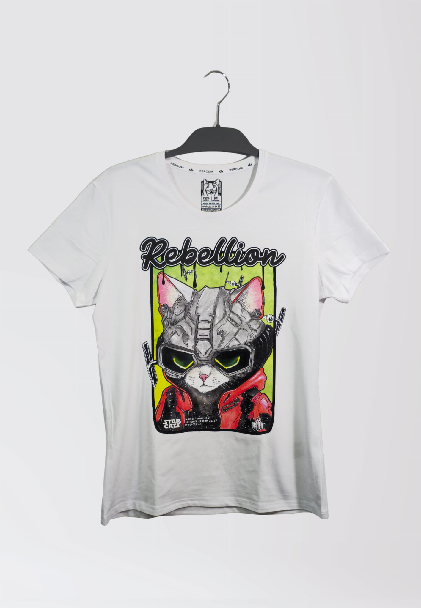Projekt to reprint ręcznie malowanej grafiki autorstwa PercomArt, dzięki czemu koszulka łączy w sobie sztukę, humor i oryginalny design.